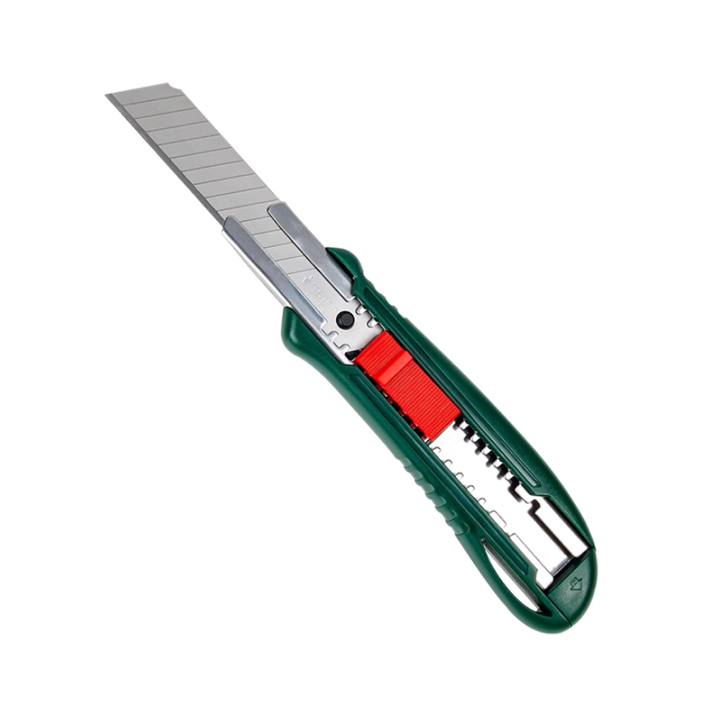 The knife body is made of ABS material. The SK5 blade is sharp and durable. The stainless steel knife holder is rust-proof, beautiful and durable. The side groove design of the knife body provides a comfortable hand feel and is not easy to slip. Double-row automatic locking, with super strong weighing capacity, capable of cutting thick objects. The blade suspension design does not damage the blade edge.